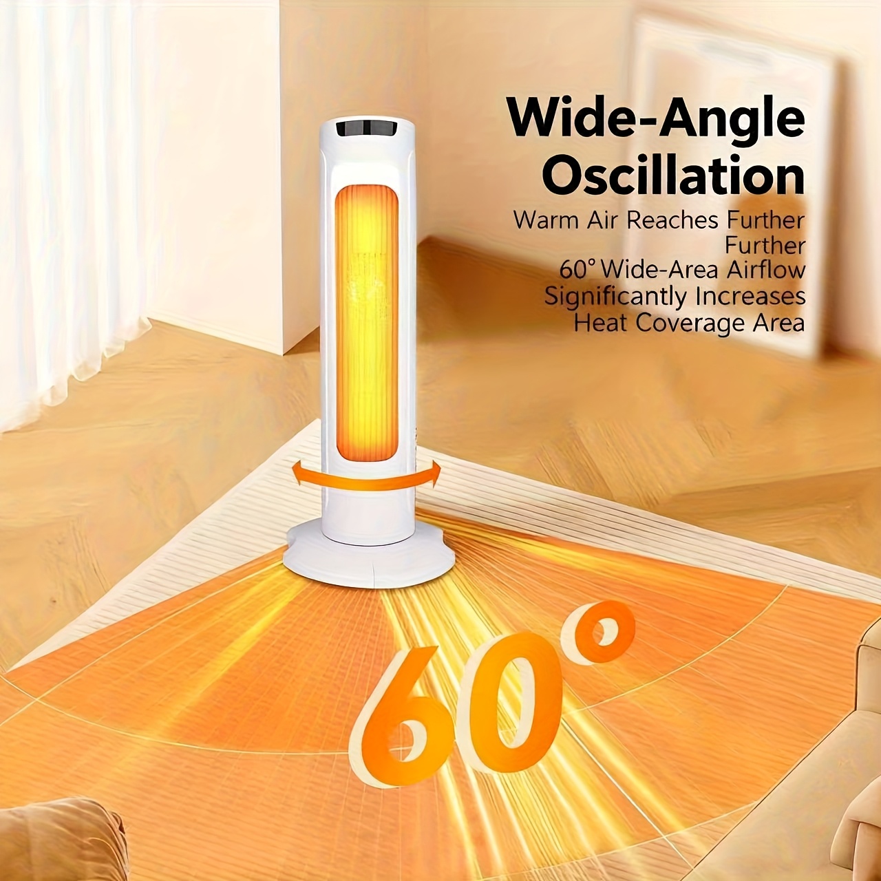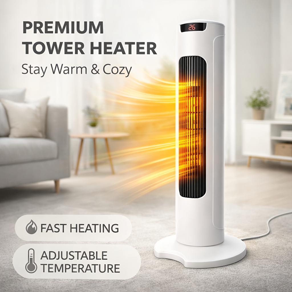 1500W Powerful Tower Heater | 60° Oscillating Heating, 21-inch Electric Heater with Thermostat, Timer, Overheat Protection, Remote Control, Ideal for Home Offices, Streamlined Design, Modern Heater