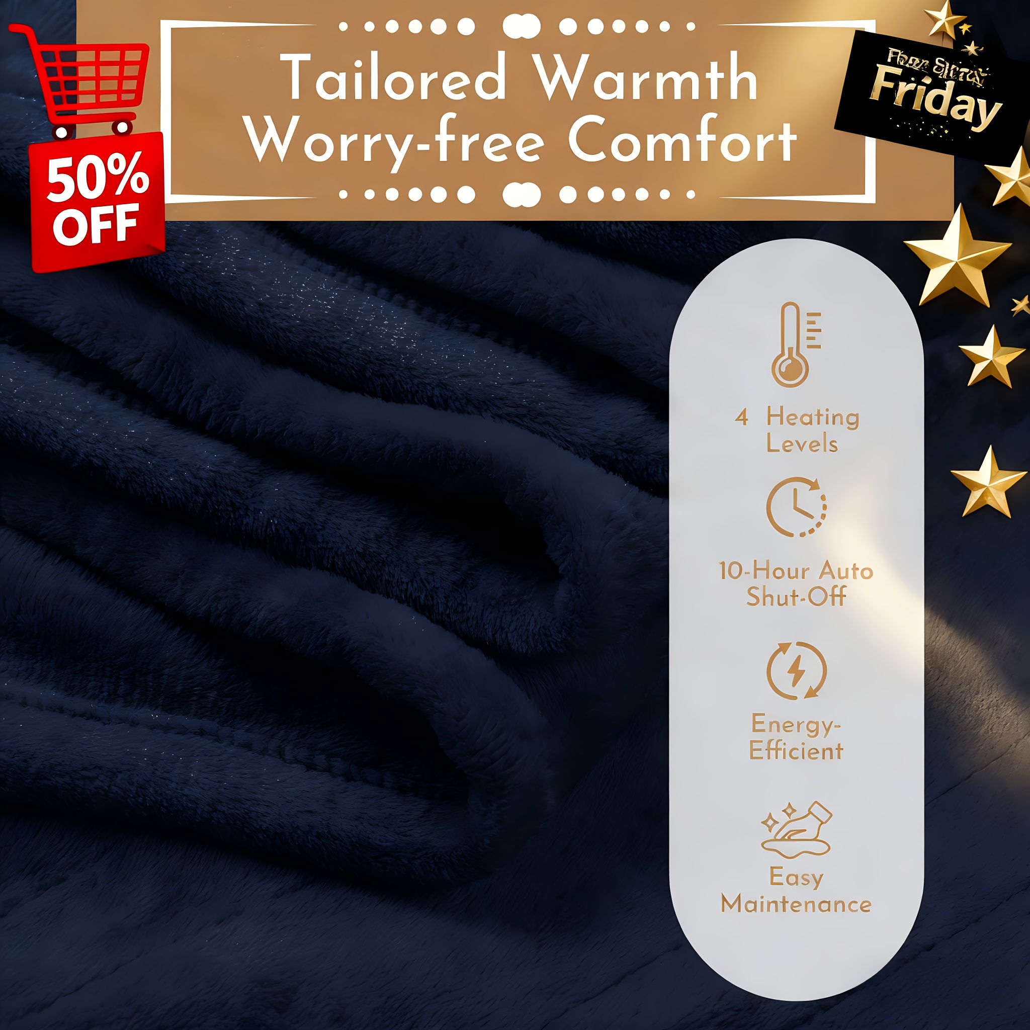 1pc Electric Heated Blanket with Control & Digital Thermostat - Adjustable Temperature (Low/High) - 4 Heat Settings, Twin/Full/King/Queen/California King - Plug-in Bedspread for, Bed, Couch, Sofa - -Efficient Heating