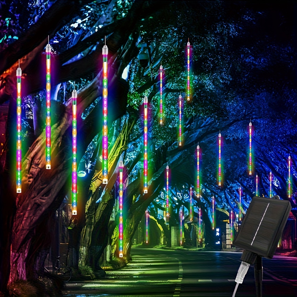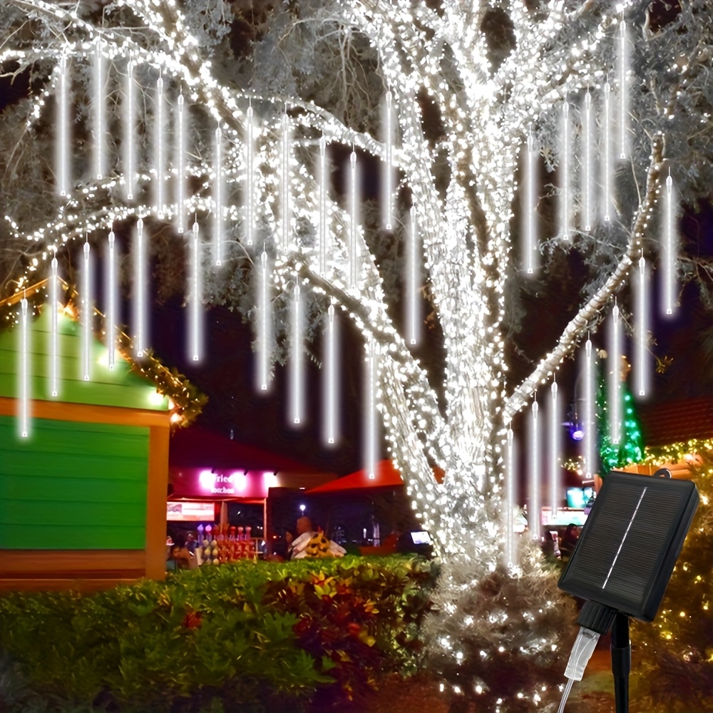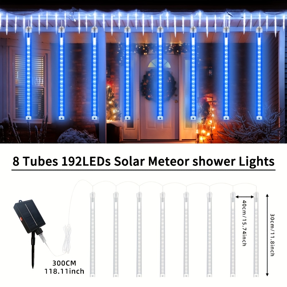 8-tube Solar Meteor Shower String Lights, Outdoor Solar Lights, Garden And Yard Decoration String Lights, Christmas And Halloween Decorative Lamps, 192 LED Floral-themed, Independence Day Hanging Tree Decorations, 8-tube Solar Light Strings