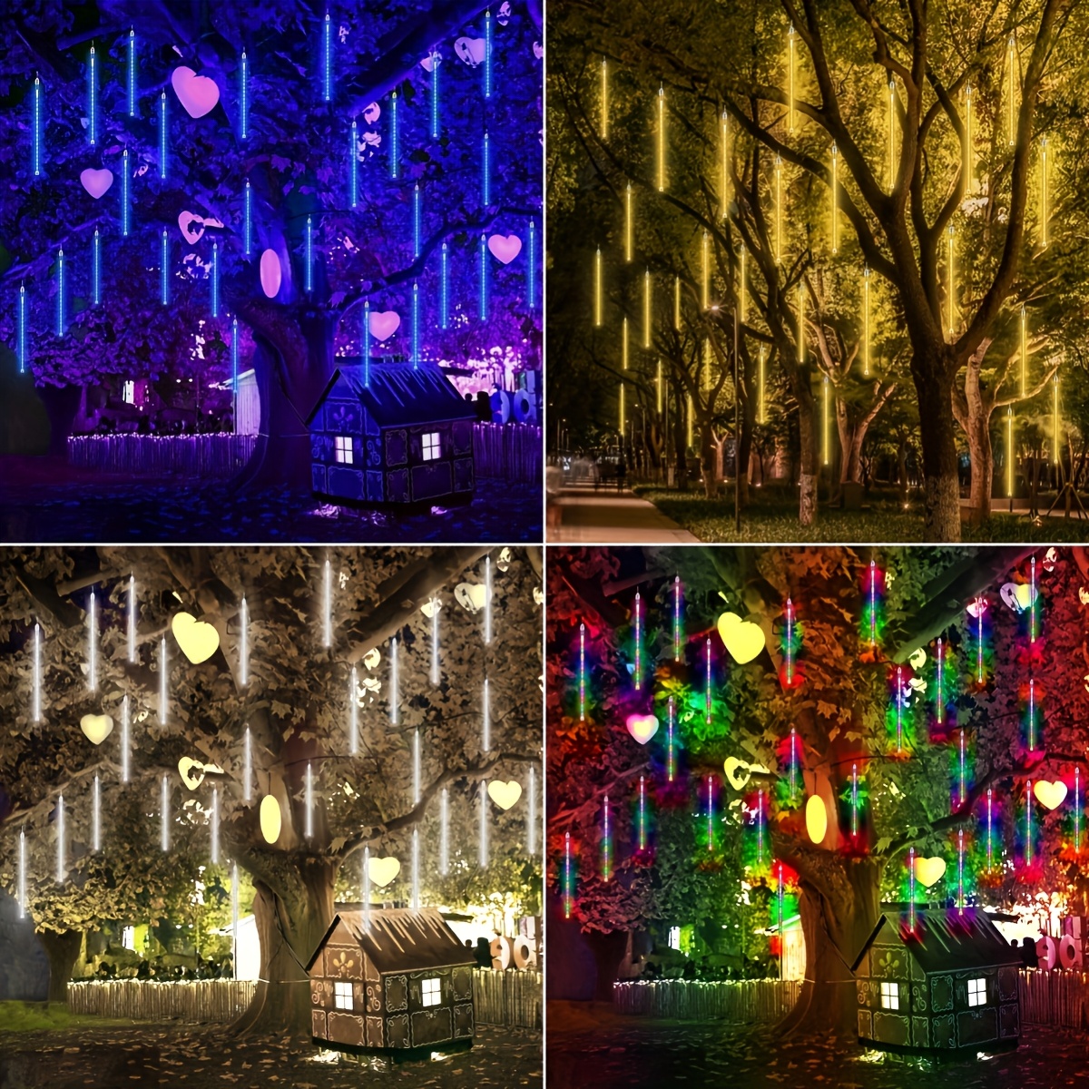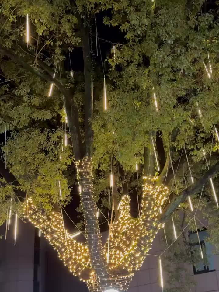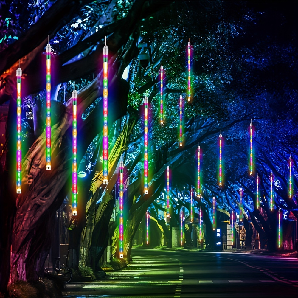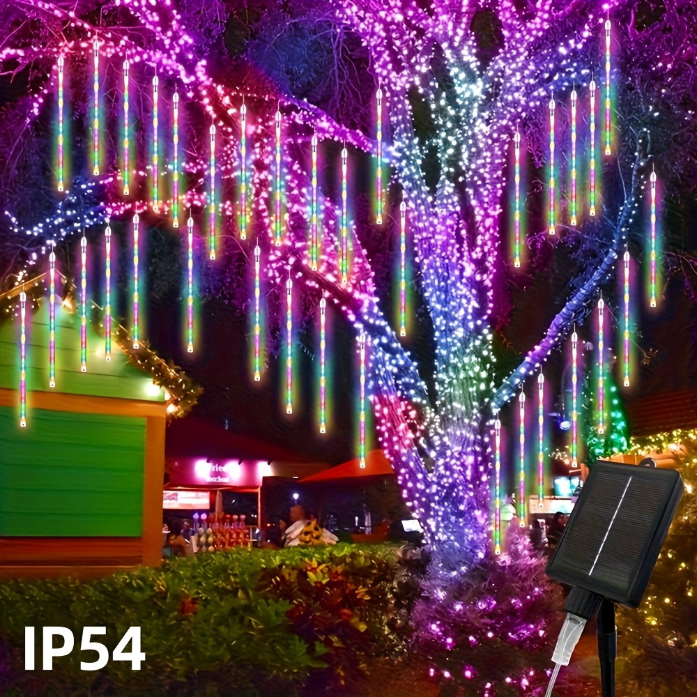 8-tube Solar Meteor Shower String Lights, Outdoor Solar Lights, Garden And Yard Decoration String Lights, Christmas And Halloween Decorative Lamps, 192 LED Floral-themed, Independence Day Hanging Tree Decorations, 8-tube Solar Light Strings