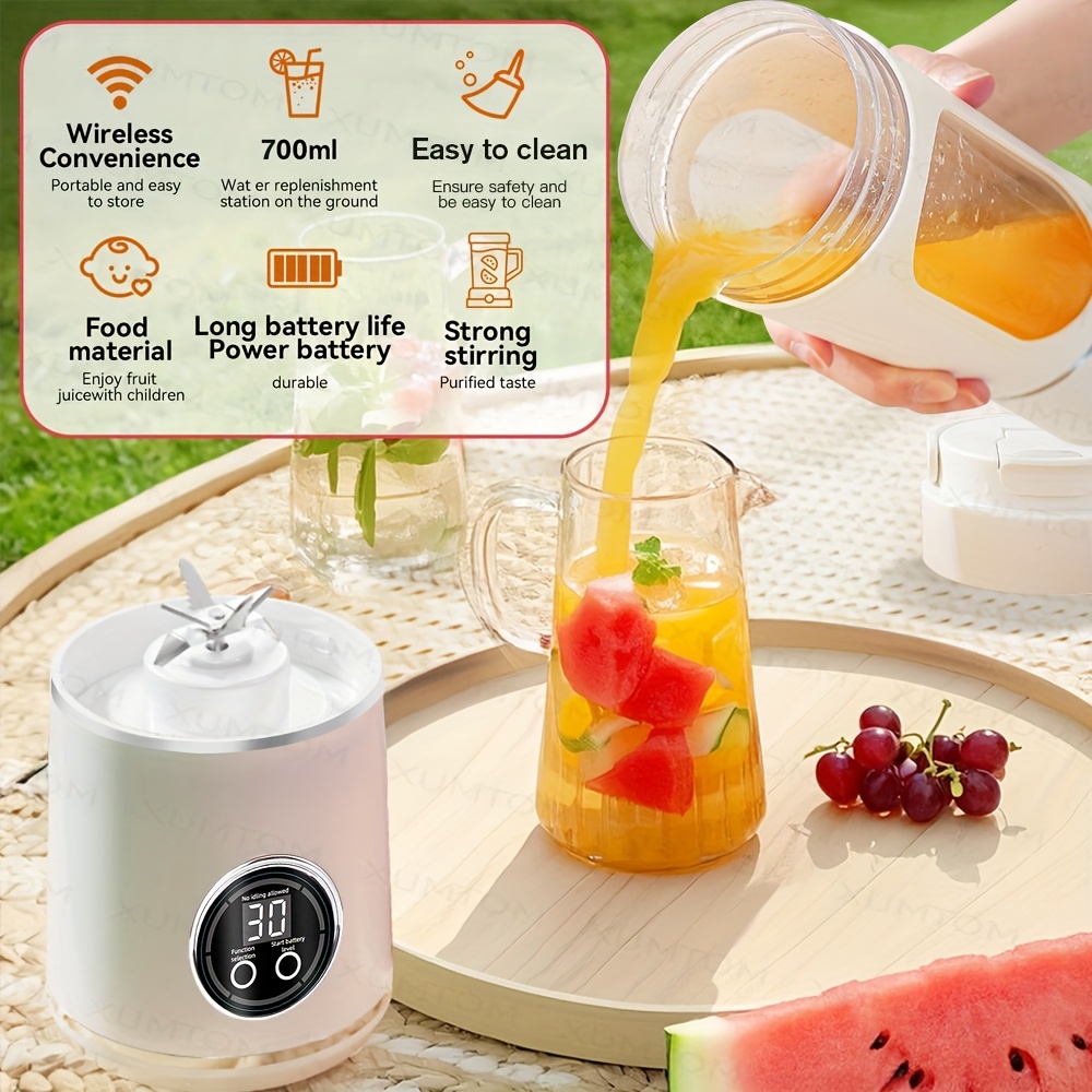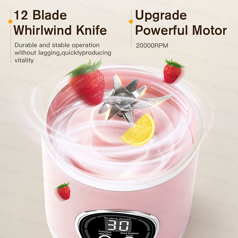 A 2-In-1 Portable Blender with a Sports Lid Juice Cup, USB Rechargeable - a Multifunctional Wireless Juicer with a 23.67oz Large Capacity Juice Cup - Features a Stainless Steel 12-Blade for Quick Juicing - Smooth Fruit Blender, Ice Crusher
