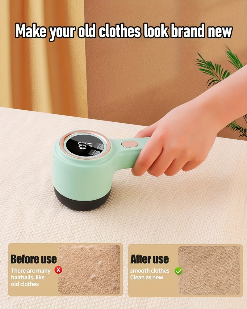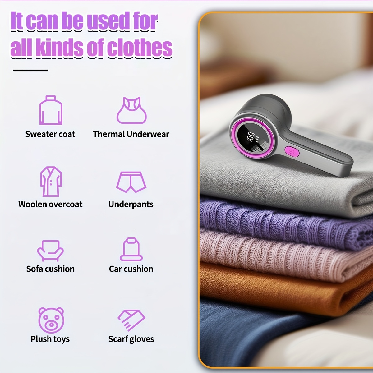 Electric Fabric Razor, Fuzz Removing Machine, Portable Pad Remover, Bedding, Furniture, 3-level Digital Display, Clothes, Carpets and Sofas - Light Gray