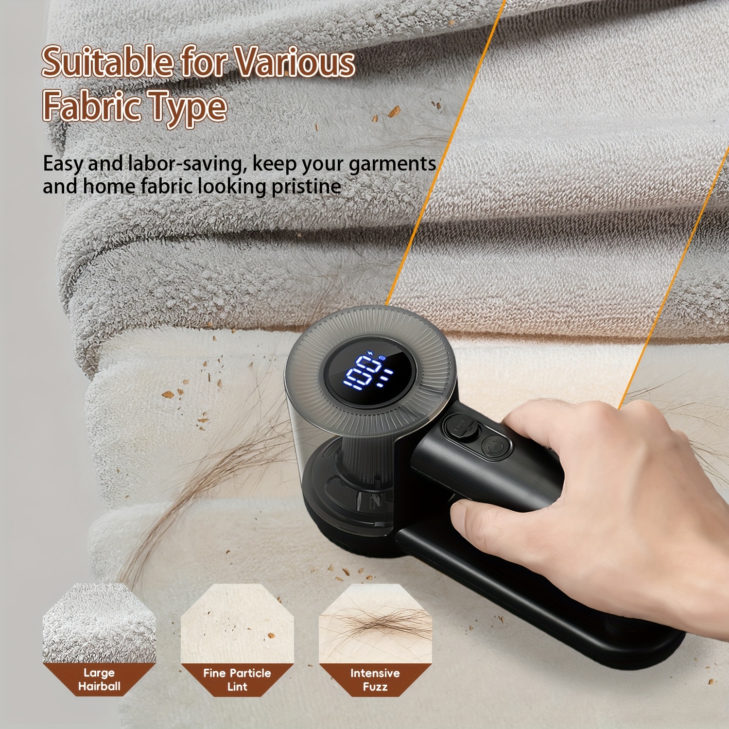 Electric Fabric Shaver for Removing Lint, Featuring a Rechargeable Design, Digital Display, And Three Speed Settings with Six Leaf Blades, Ideal for De-Pilling Clothes, Furniture, Sweaters, Couches, And Blankets