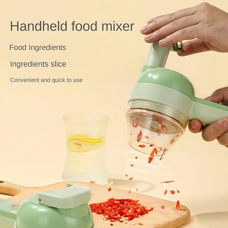 4-in-1 Handheld Electric Mixer & Food Processor with Motor - Portable Battery- Kitchen Appliance Suitable for Cutting, Grinding, Peeling, Cleaning - Compact for, Camping, Travel, Automatic Operation, Ideal for Small Kitchens & -the-