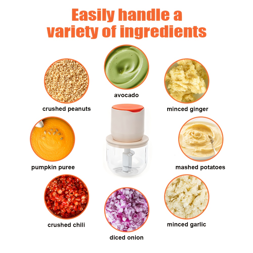 600 Electric Food Processor | Multi-functional Tool for Meat, Onions, Vegetables, Garlic Mincing, USB Charging, Ideal Christmas Gift