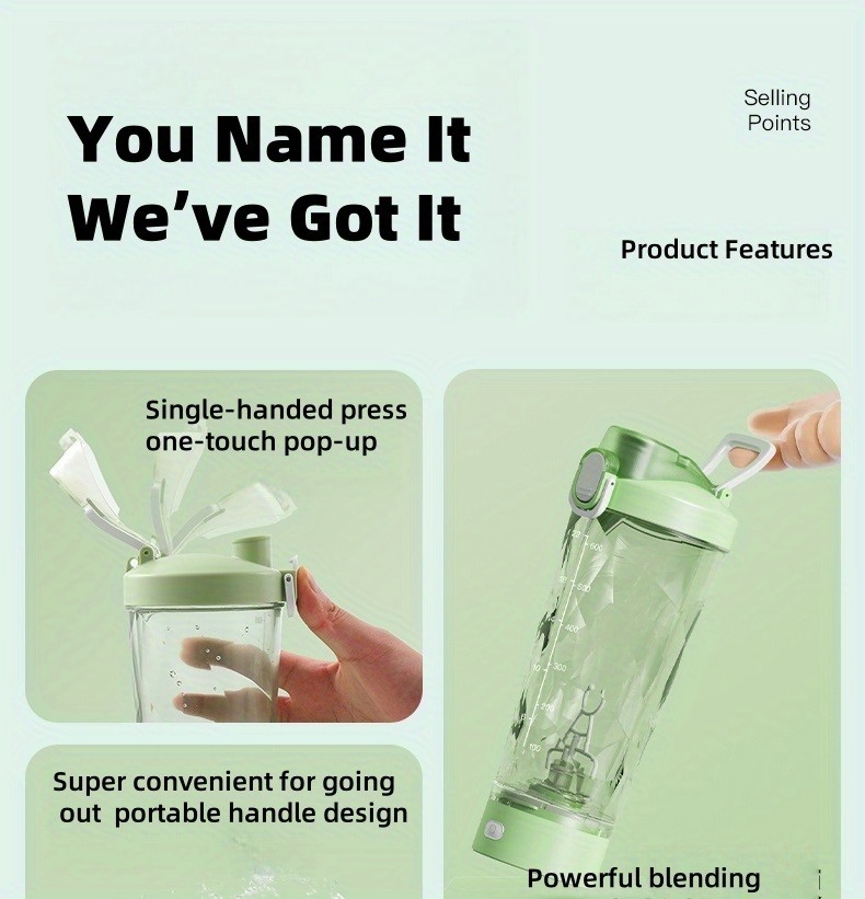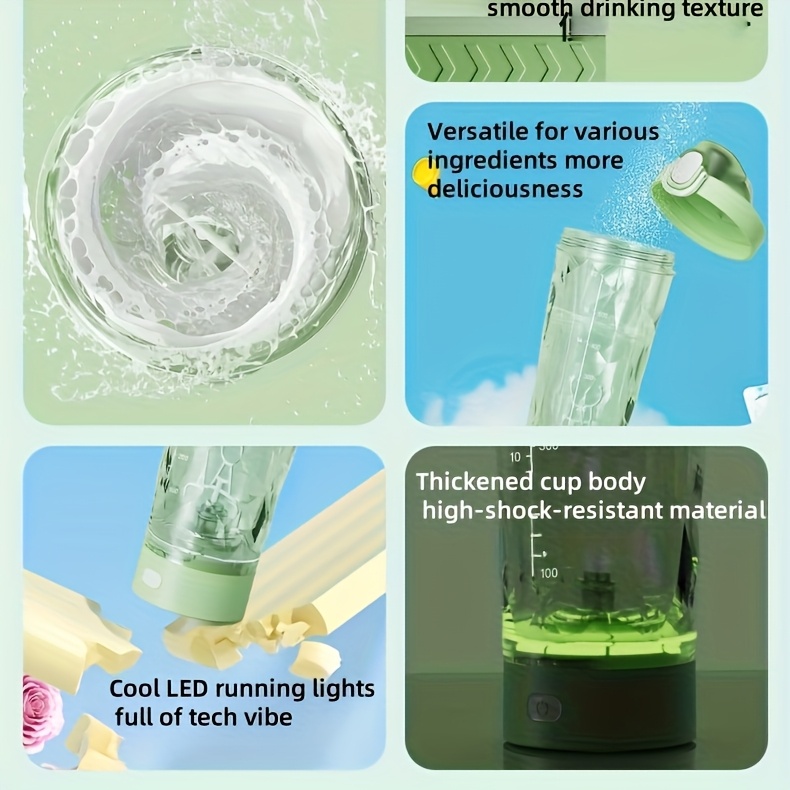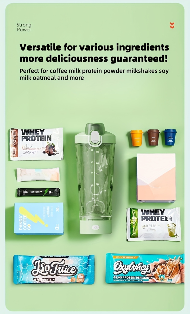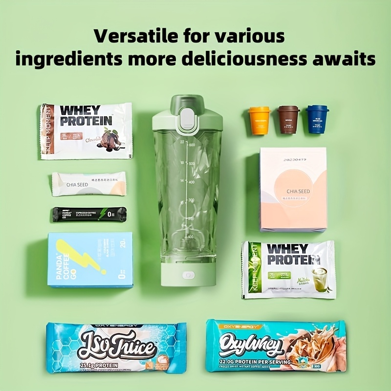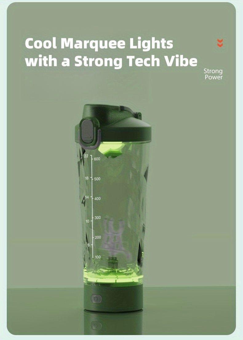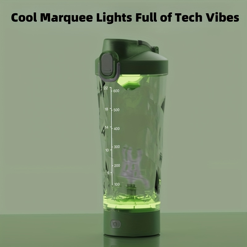 LED Light Protein Powder Shaker Cup with One-Key Mixing | 600ml Large Capacity | USB Charging Leak-Proof Drop-Resistant | Dual Cold/Hot Drinking Cup | Portable Gym/Office Travel Mug, Suitable For Protein Powder, Coffee, Milkshake, Sports Drink
