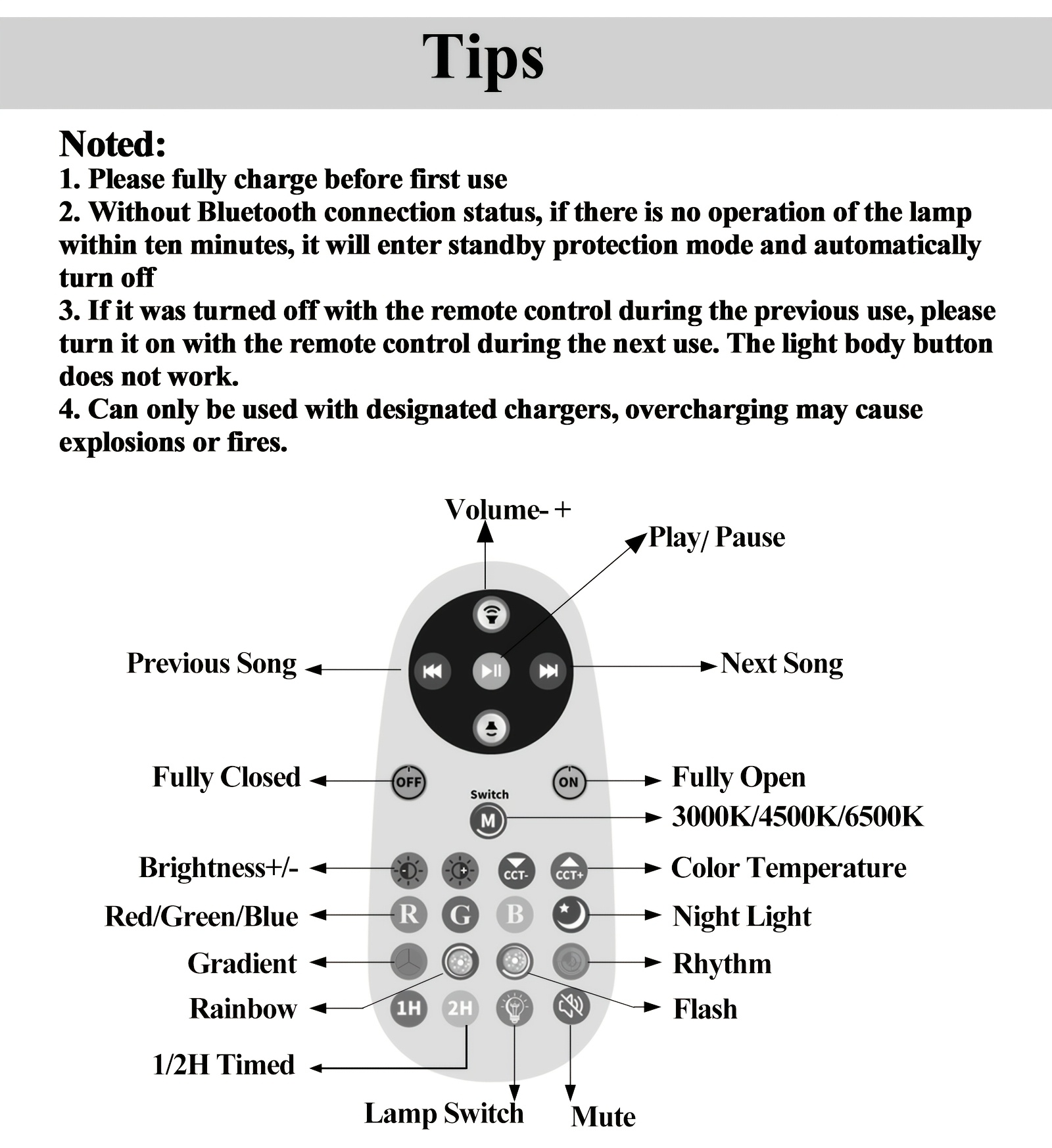 Remote Control Applicable Battery:Use Non-rechargeable Dry Batteries (AA, AAA Batteries, Etc.)