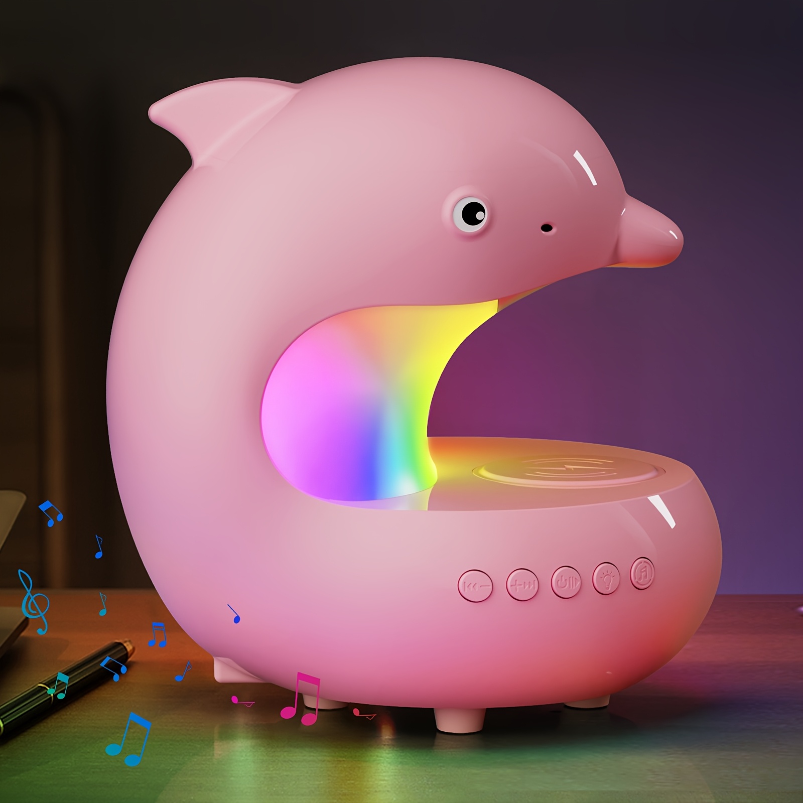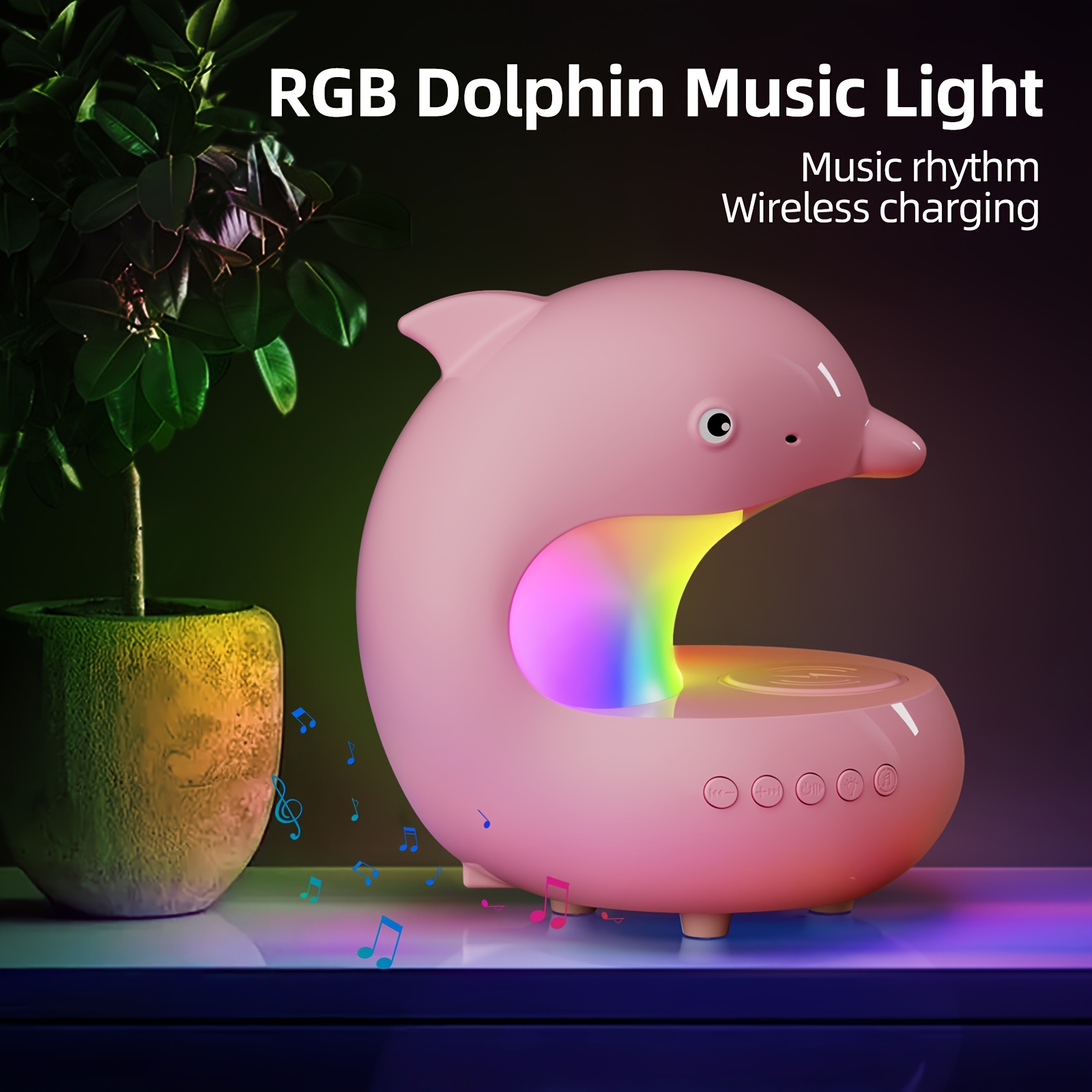 Rechargeable Smart Lamp with Wireless Music Speaker and Wireless Charger for Mobile Phone | Adjustable Brightness Dolphin Table Lamp, USB Type-C Desk Lamp, Bedroom LED Night Light, Valentine'S Day Gift, Camping, Wedding, Halloween