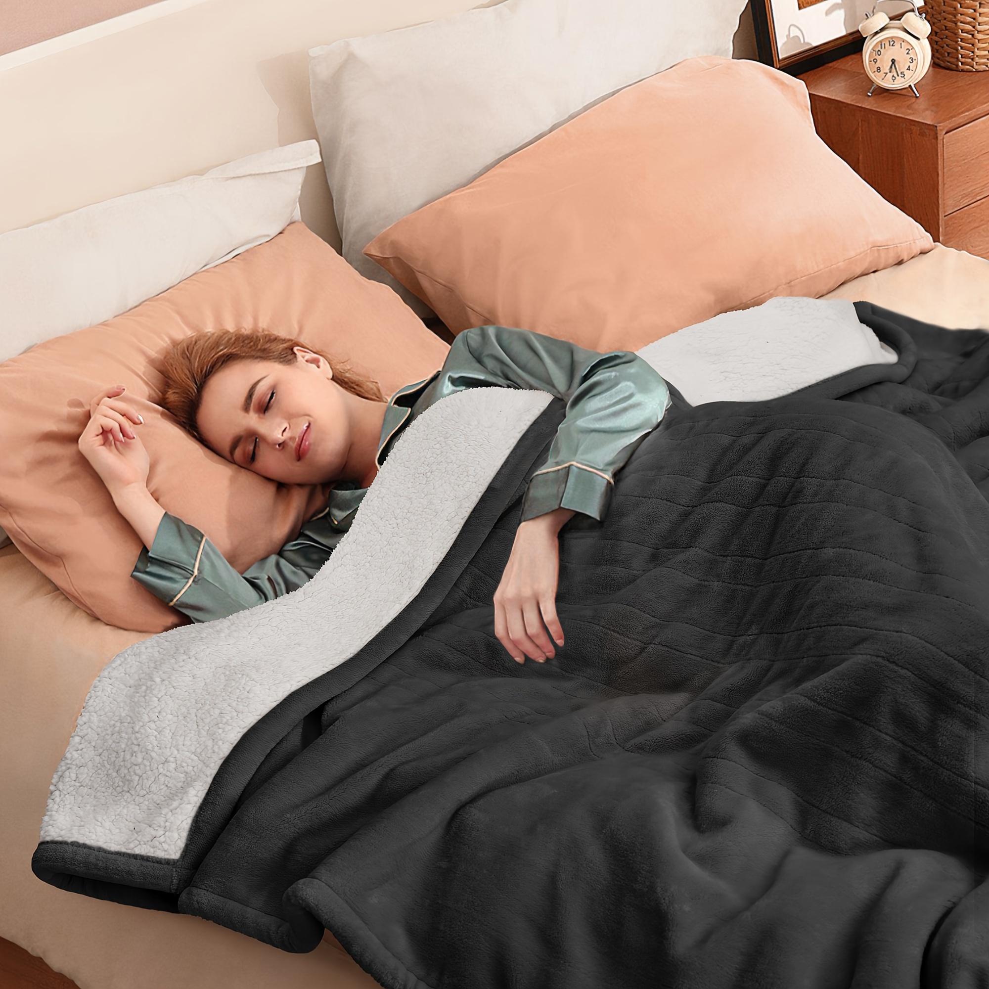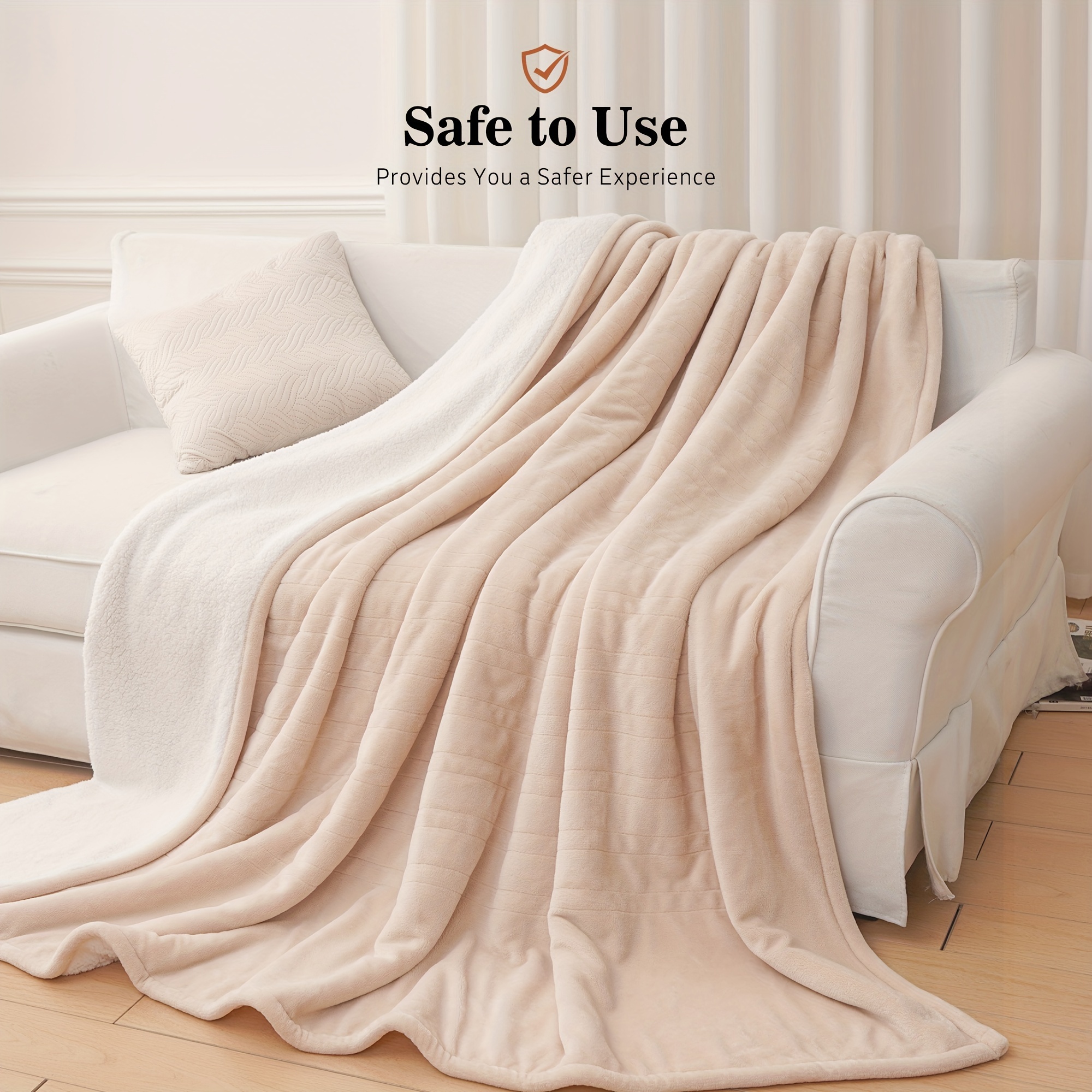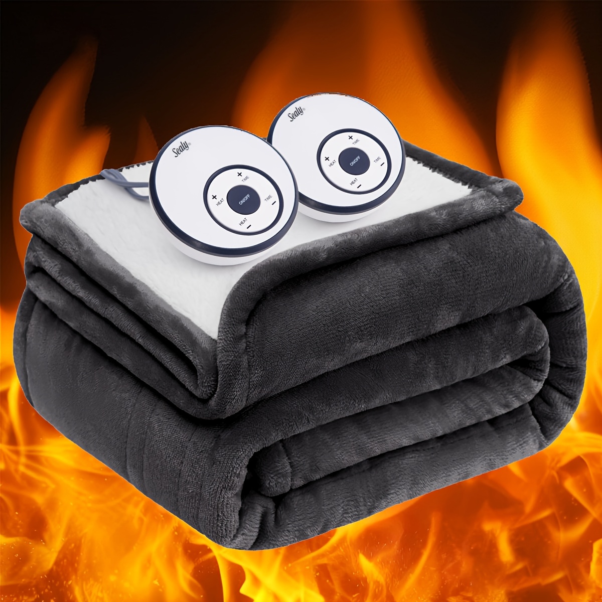Sealy Silky Soft Flannel To Sherpa - Electric Heated Throw Blanket - Machine Washable - Twin/Full/Queen/King Size - 10 Heating Levels & 1-12 Hour Time Settings - Beige Ivory/Dark Grey