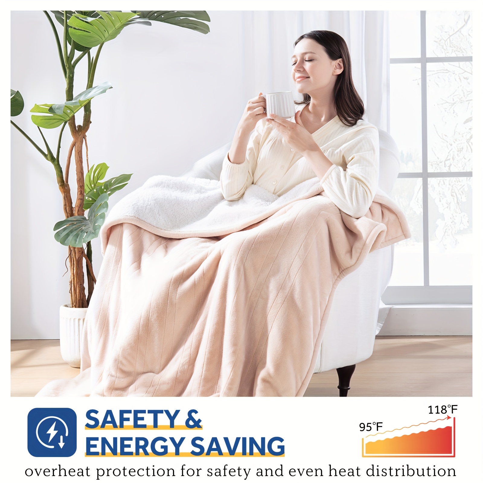 Westinghouse Electric Blanket, Soft Flannel And Shearling Heated Blanket, Warm And Soft, Heats Up Quickly with 4 Temperature Settings And 4-Hour Timer, Features Foot Pocket, Machine Washable, Available In Multiple Colors And Sizes, Perfect Gift