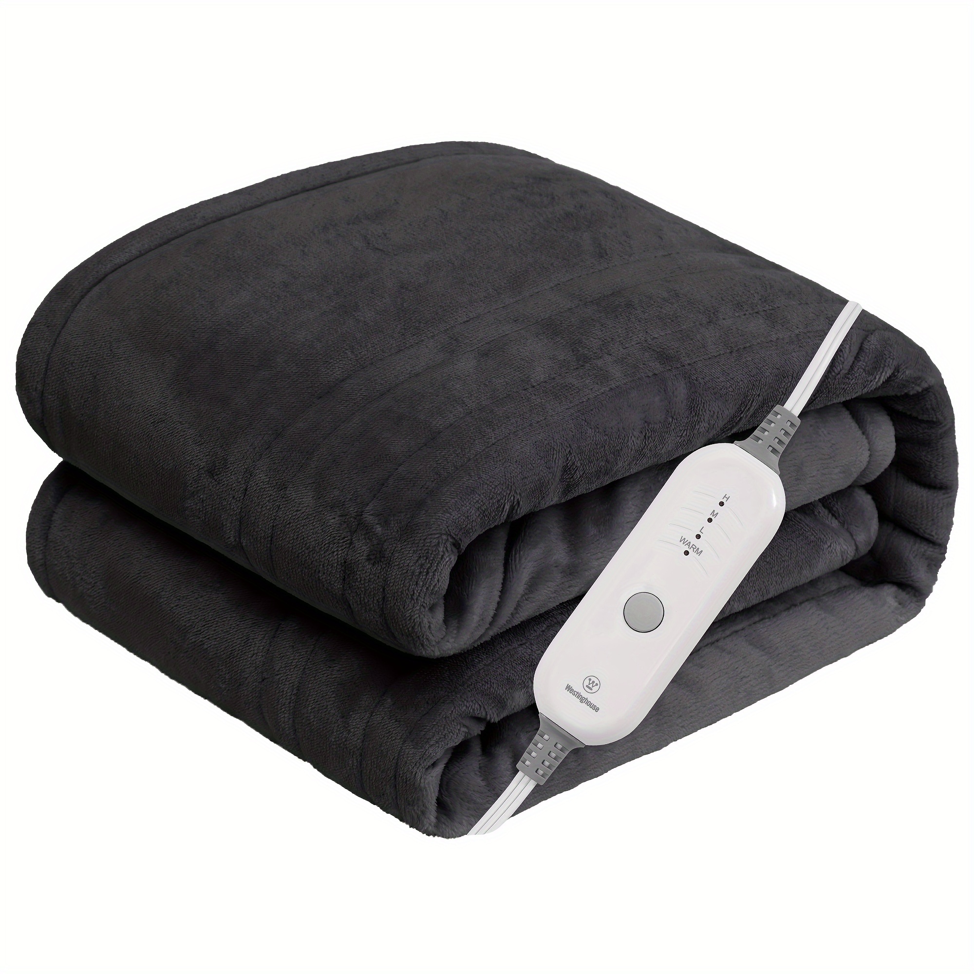 Cozy Westinghouse Silky Soft Flannel Electric Heated Throw Blanket, 4 Adjustable Heat Settings & 1-4 Hour Timer, Machine Washable, 50x60 Inch - Perfect for Home Comfort, Beige Ivory/Dark Grey, WESTINGHOUSE