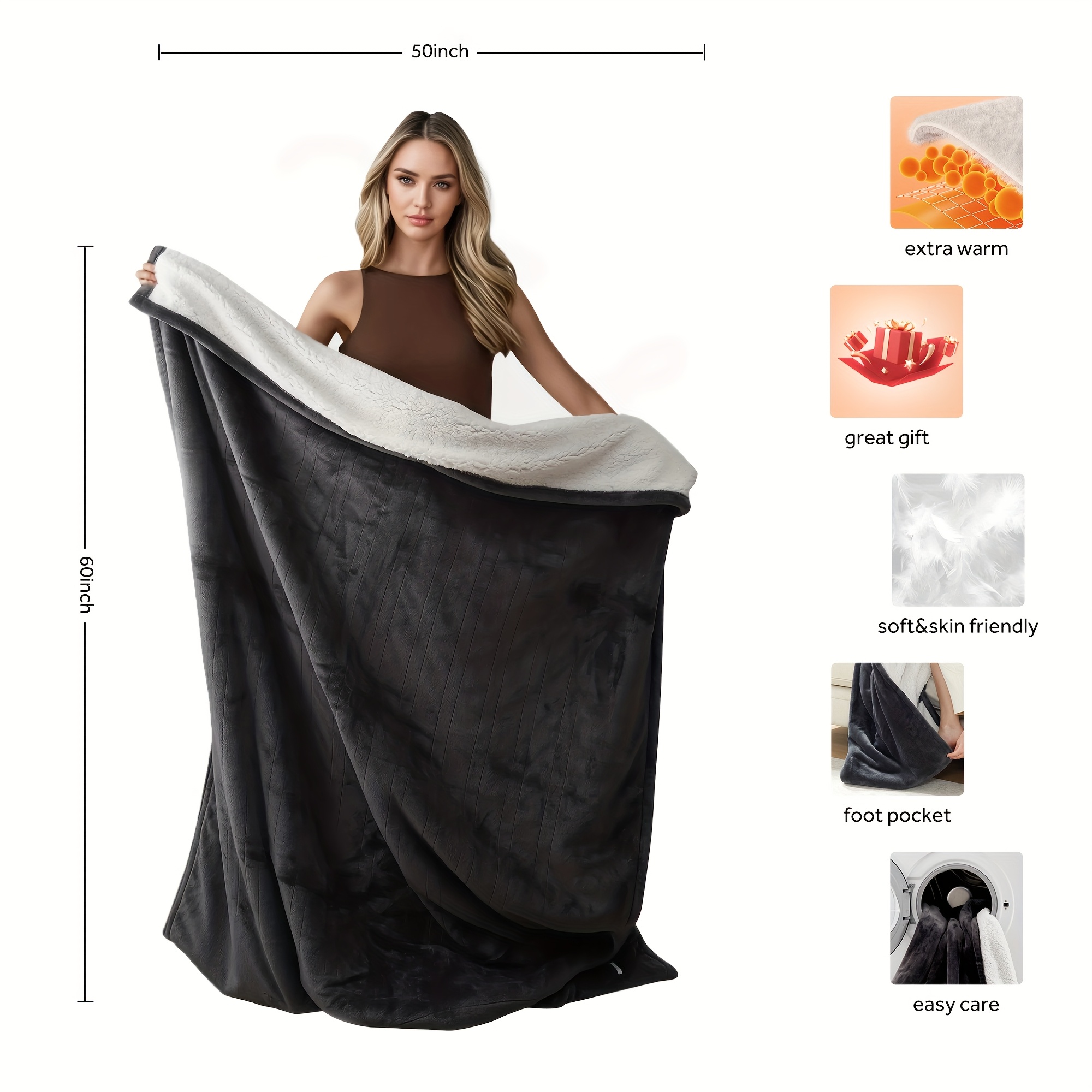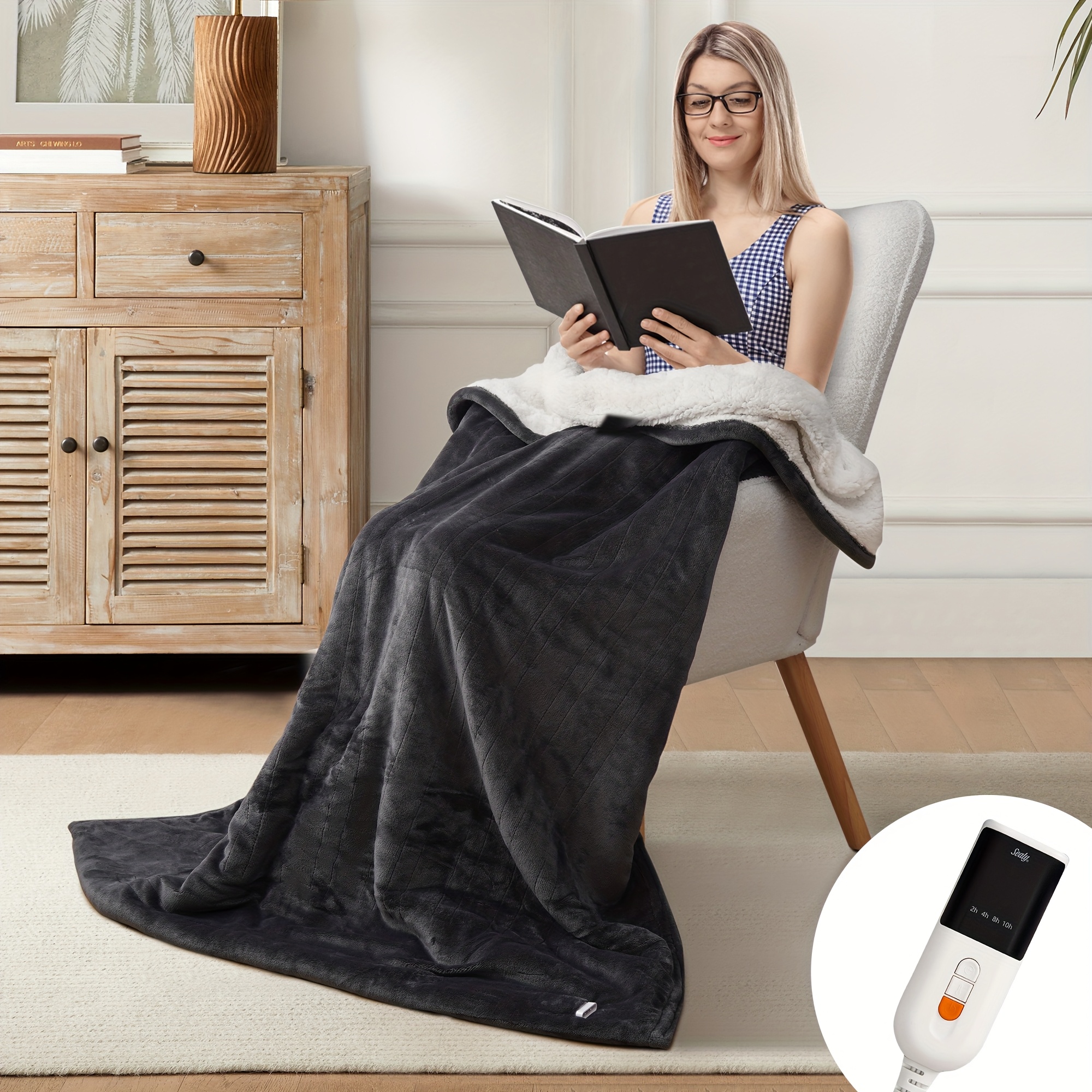 Sealy 60"x50" Electric Heated Blanket - 6-Turbo Heat Settings (Including 150°C), Overheat Protection & Timer (2/4/8/10H), Full-Body Coverage, High Quality - Heavy-Duty Electric Throw for Bed, Couch, Home - Ideal Christmas Gift - US Plug (100-120V) -